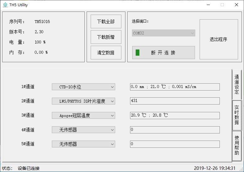 TH5是由我公司自主研發的一款操作簡單、輕巧便攜的數據采集器,可與土壤溫濕度、氣象參數等多種功能的傳感器連接使用。TH5設有5個通道接口,可連接1至5個傳感器。機箱防護等級IP67,適于野外長期使用。
